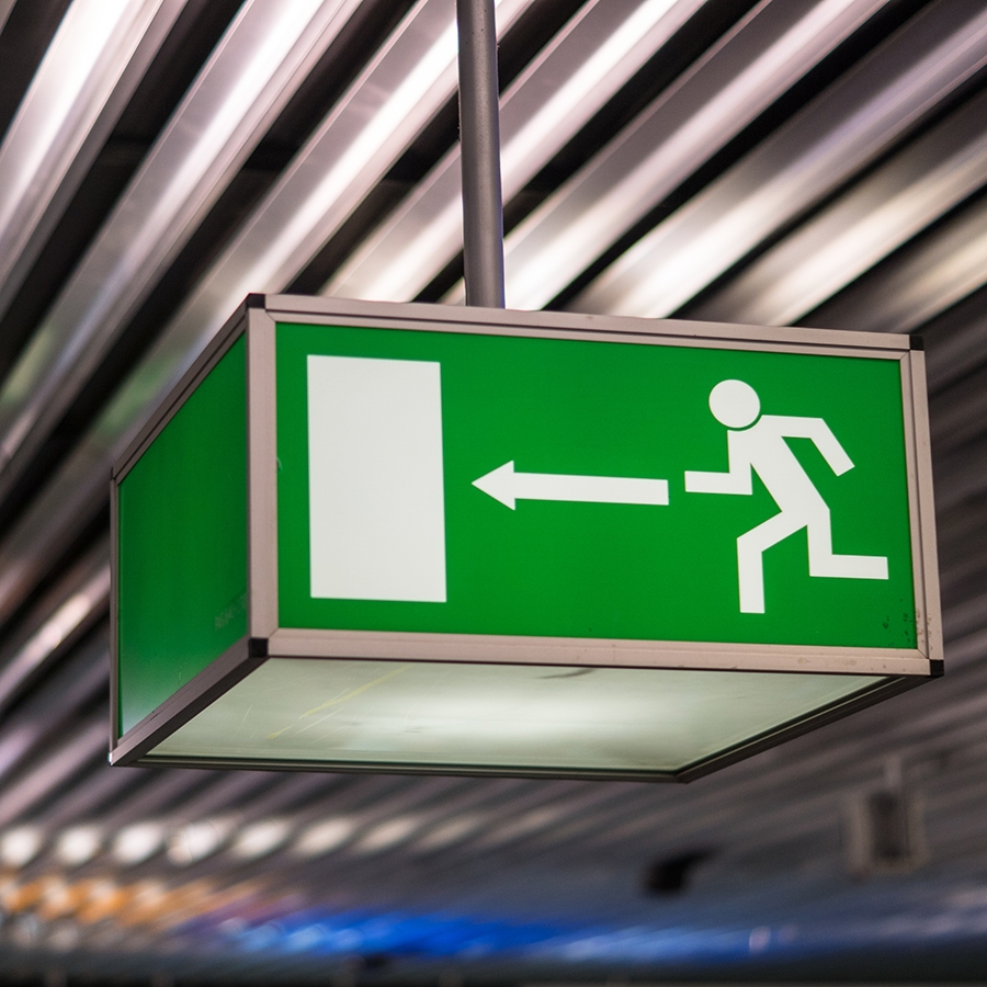 Fire exit door signage regulations.
